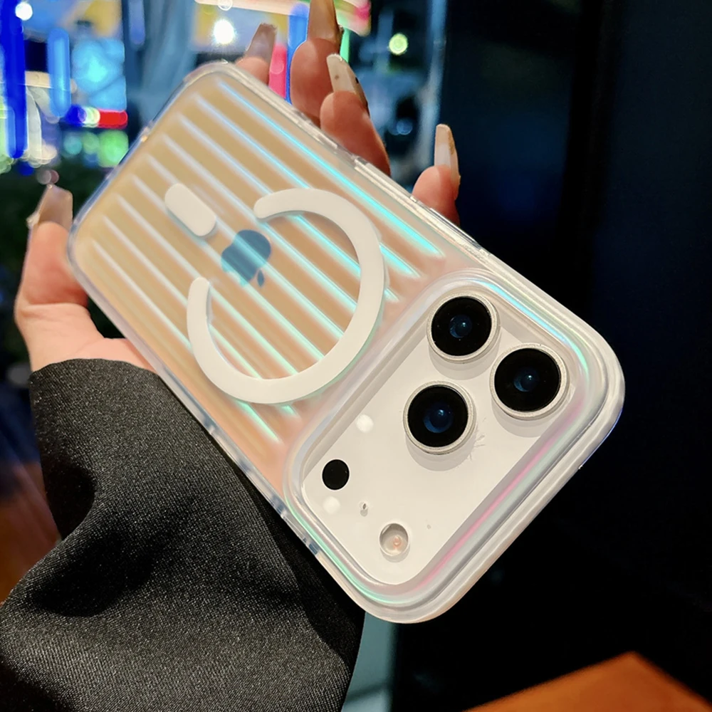 التصميم : جراب هاتف فاخر لامع من Aurora Luggage Magsafe، شفاف، هندسي، لامع
