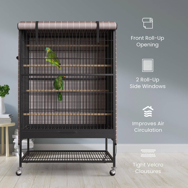 Universal Bird Cage Cover Good Night Blackout 51x 38x 23.5 Inch Thin Lightweight Breathable Small Animal Cages Cover Pet Removable Durable Protector Beige