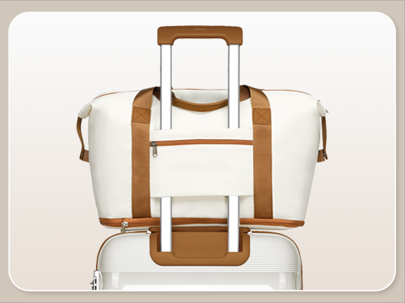 【EXPANDABLE Duffel Bag】The duffel bag expands for extra packing space. There is a zip at the bottom of the bag and when it opened, the tote bag will immediately increasing capacity. A small strap for securely attaching your bag to the handle of your suitcase as a set. Free up your hands and make your trip more enjoyable and easier.