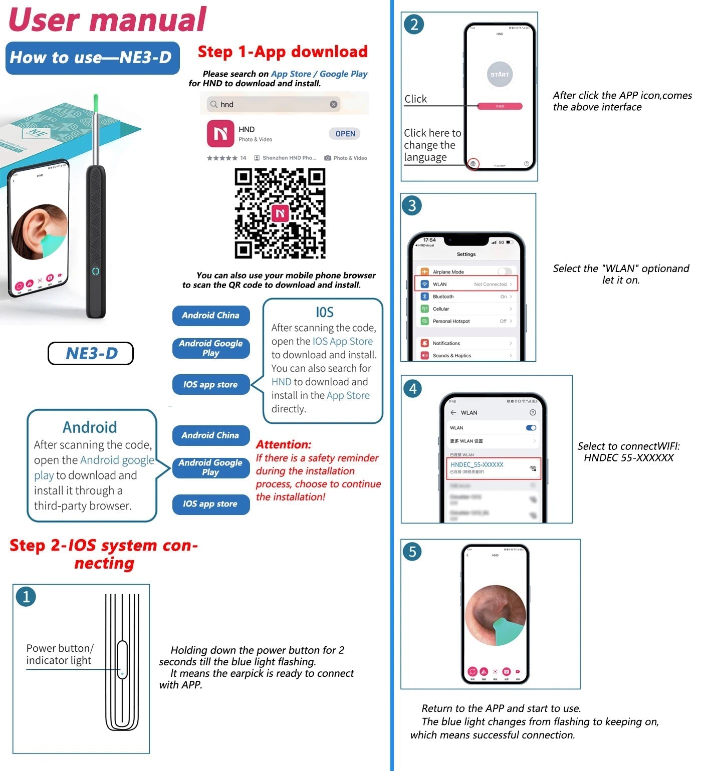 Ear scoops made of soft medical-grade silicone and durable ABS camera body ensure comfort, hygiene, and safety.