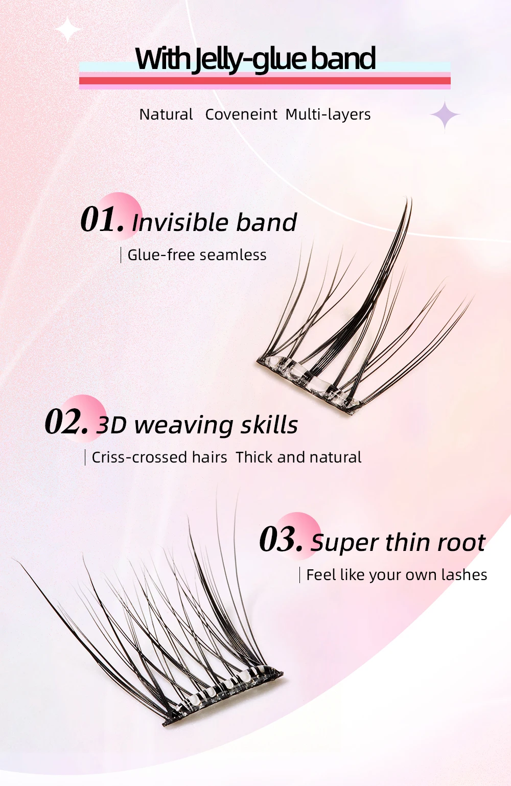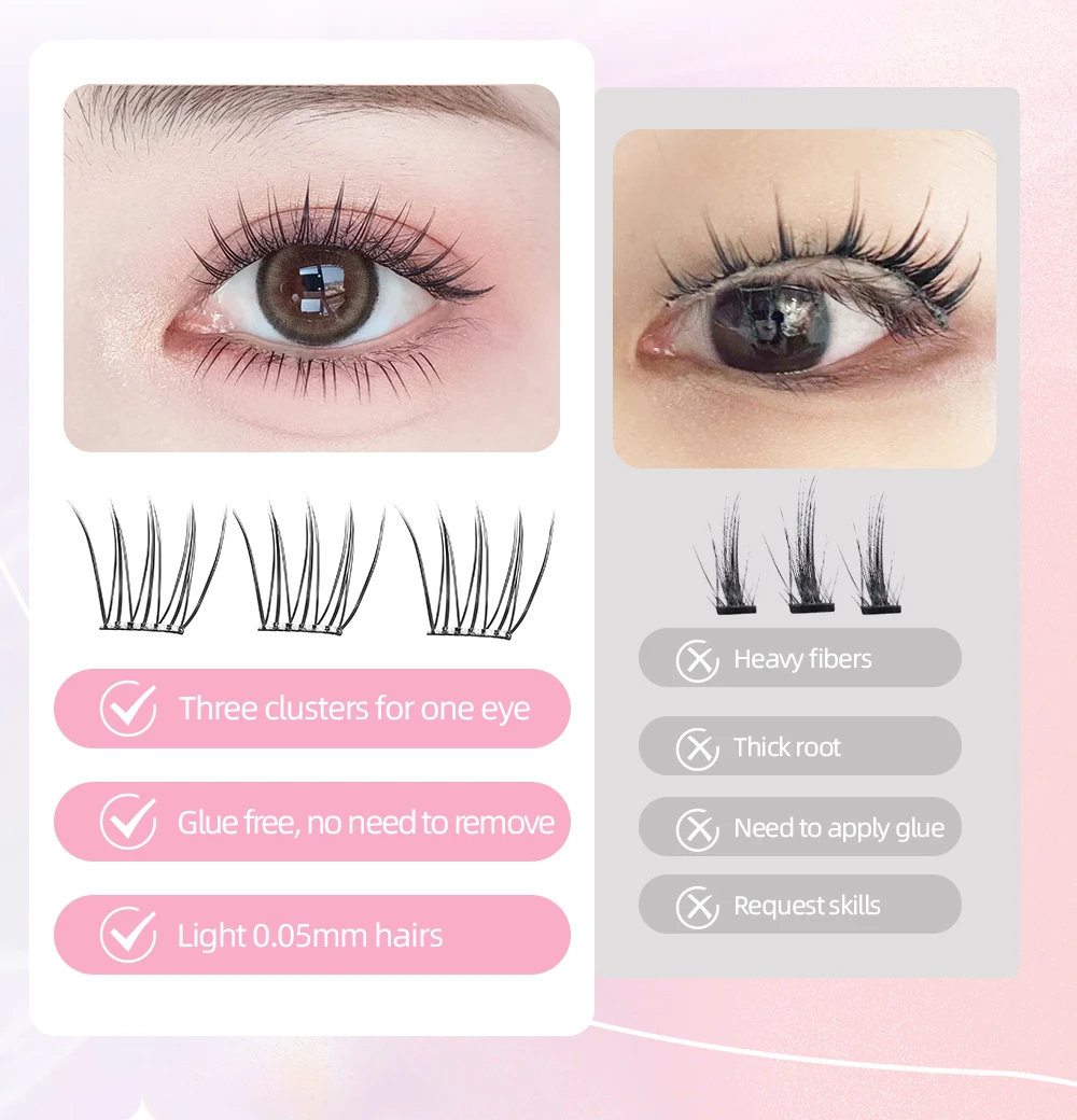 - Glue Free DIYL ashes with clear adhesive stripsand ready to use without glue. Glue F ree DIY lashes just the right length and volume , will blend in your natural lashes