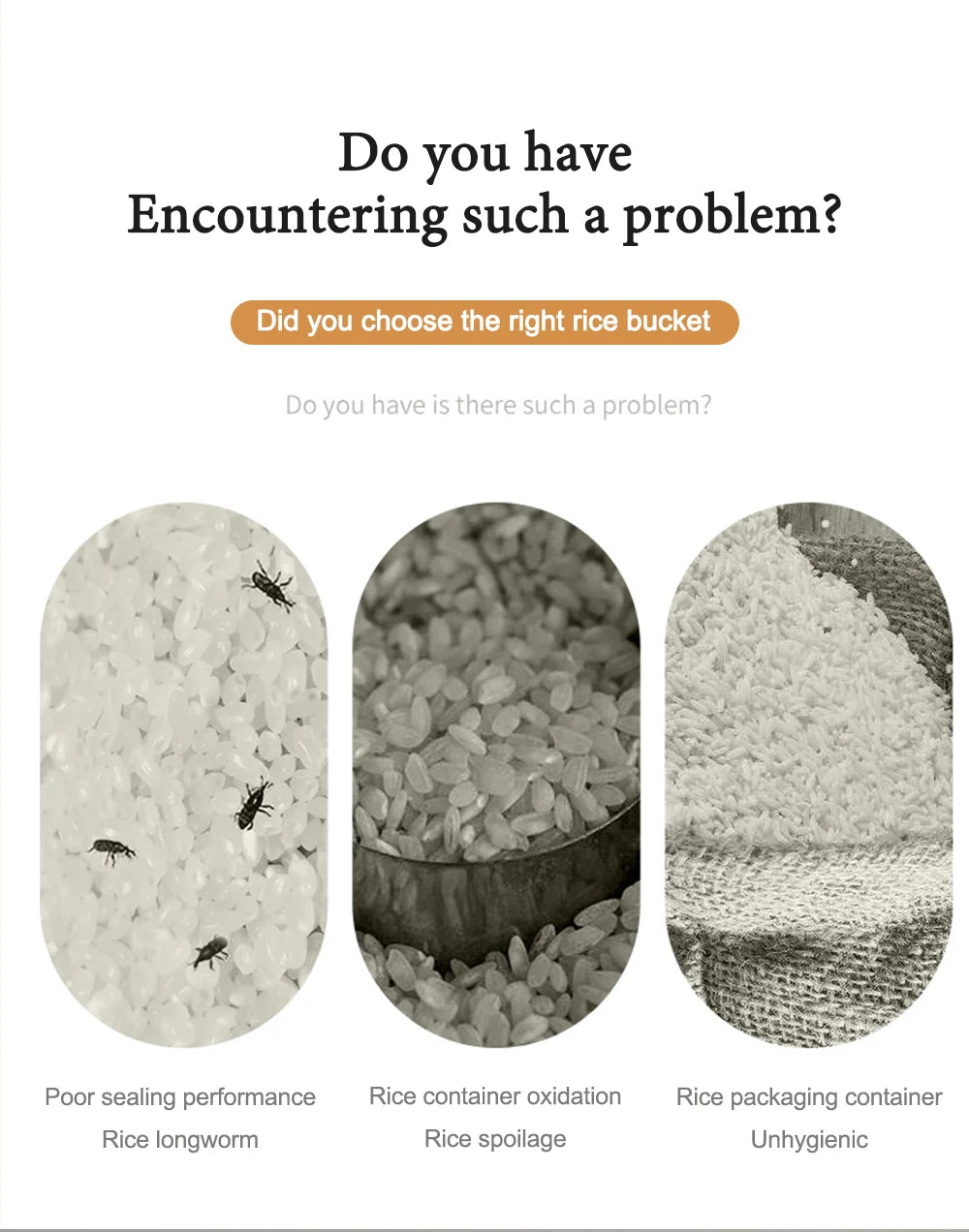 This rice storage container can store 5 to 10 kilograms of grain, allowing for longer storage periods and maintaining its hygiene. It can store other small grains, such as soybeans, corn, sago, and beans. You can also store pet food.