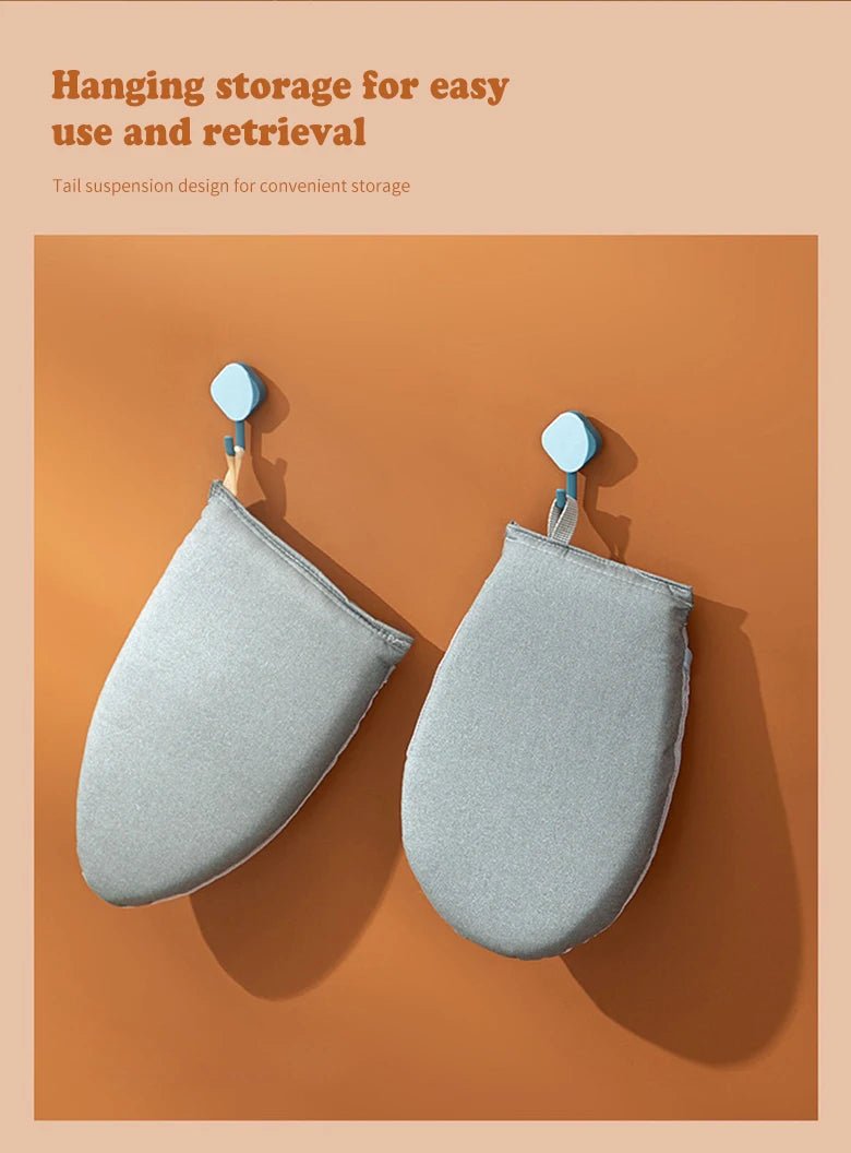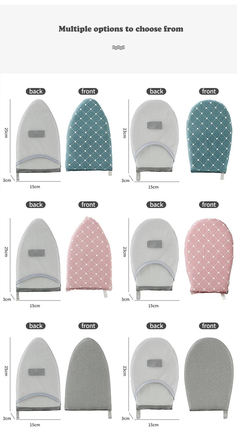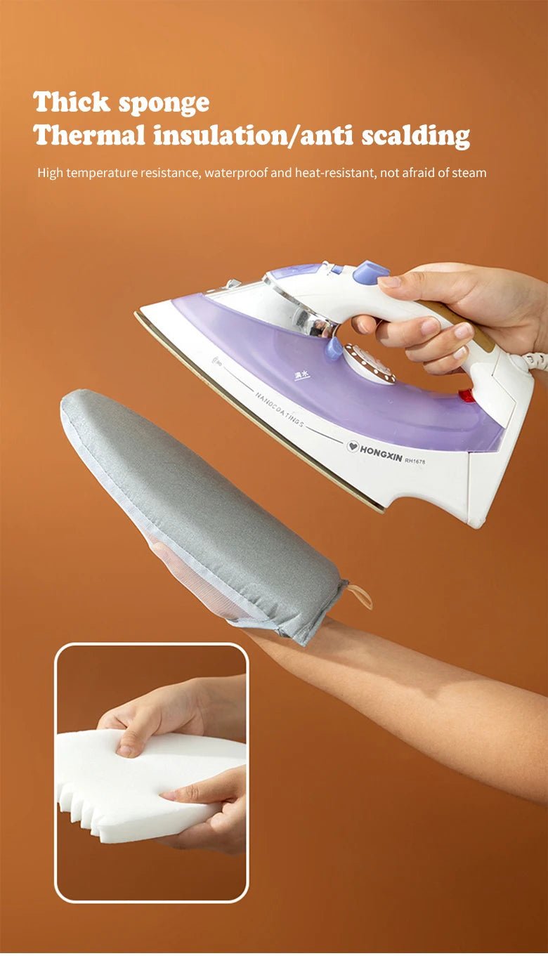 By using this small ironing board, it is more convenient to wear on the hand to iron the corners of clothes and prevent burns.