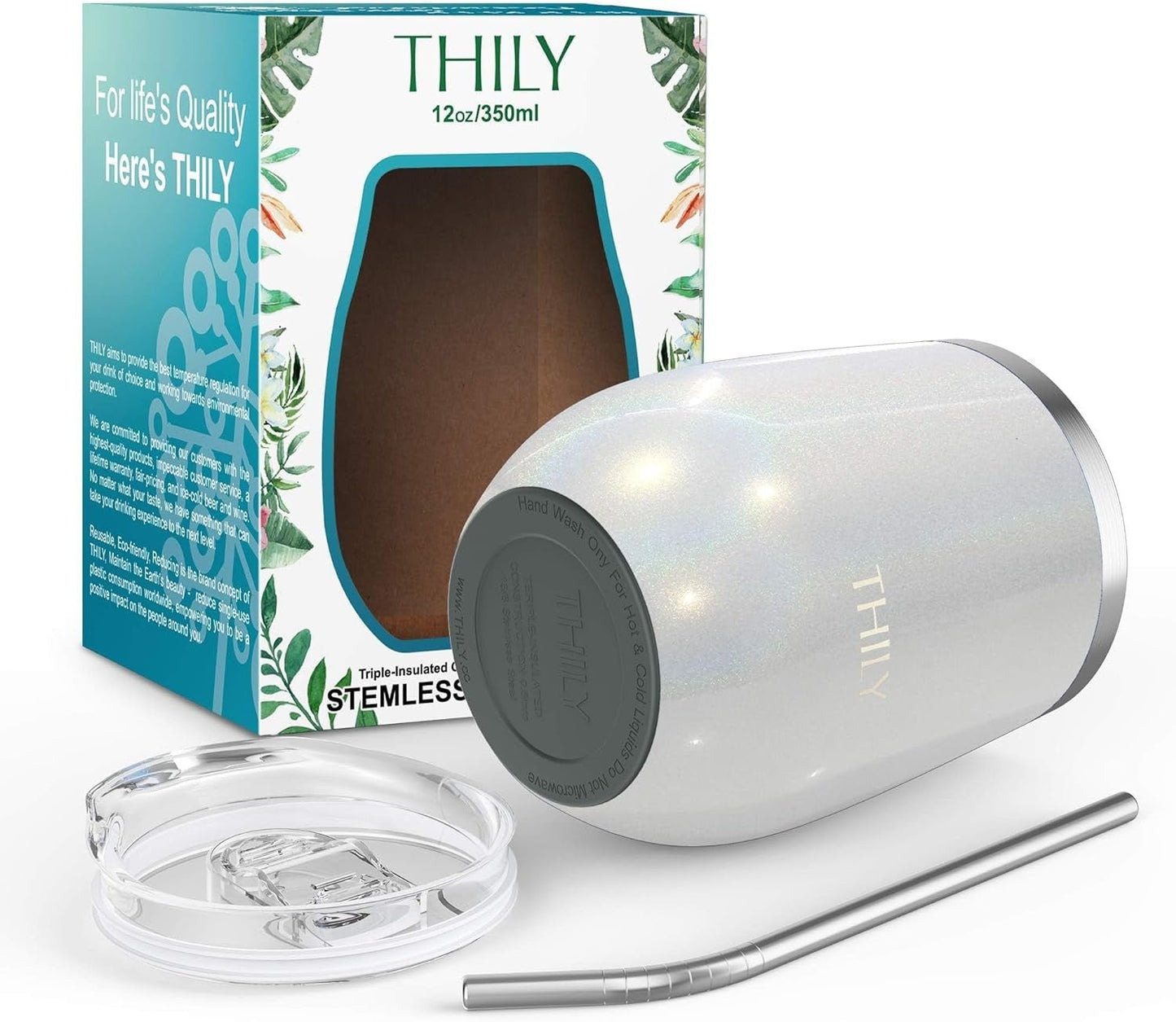 I would recommend THILY 12oz vacuum insulated stemless wine tumbler with spill proof lid and stainless steel straw