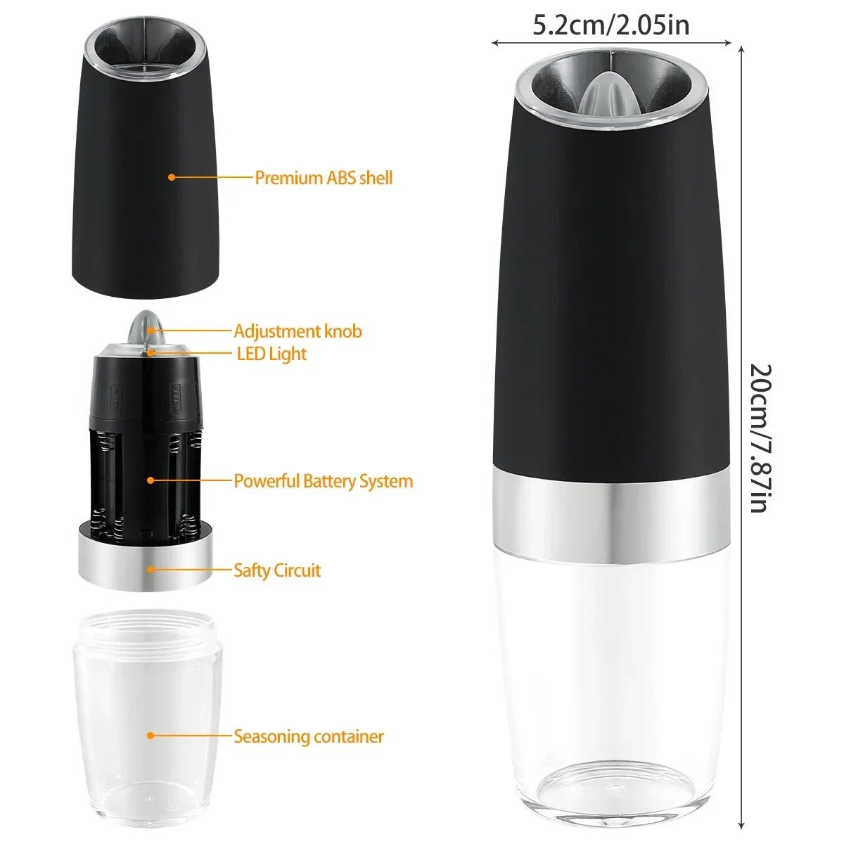 【Gravity Induction Design】This grinder adopts an advanced gravity induction design. Just flip the pepper mill, and you can get fresh ground spices.