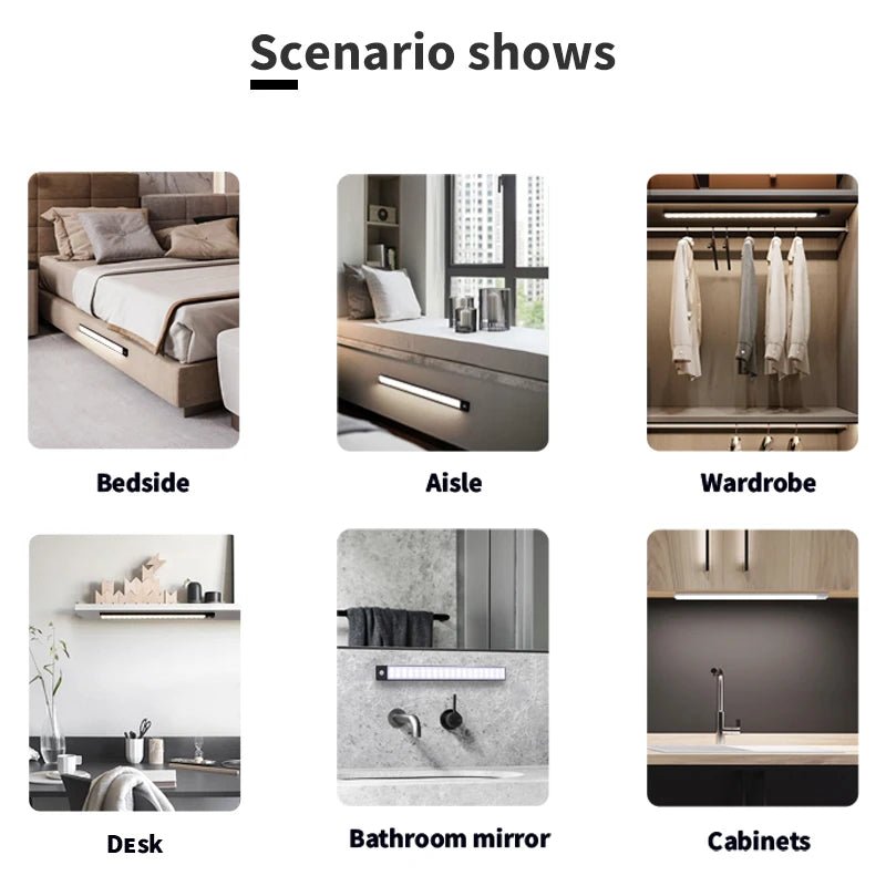 Ideal for under cabinets, kitchen counters, closets, wardrobes, stairs, drawers, hallways, basements, garages, and storage rooms—anywhere you need smart, motion-activated lighting.