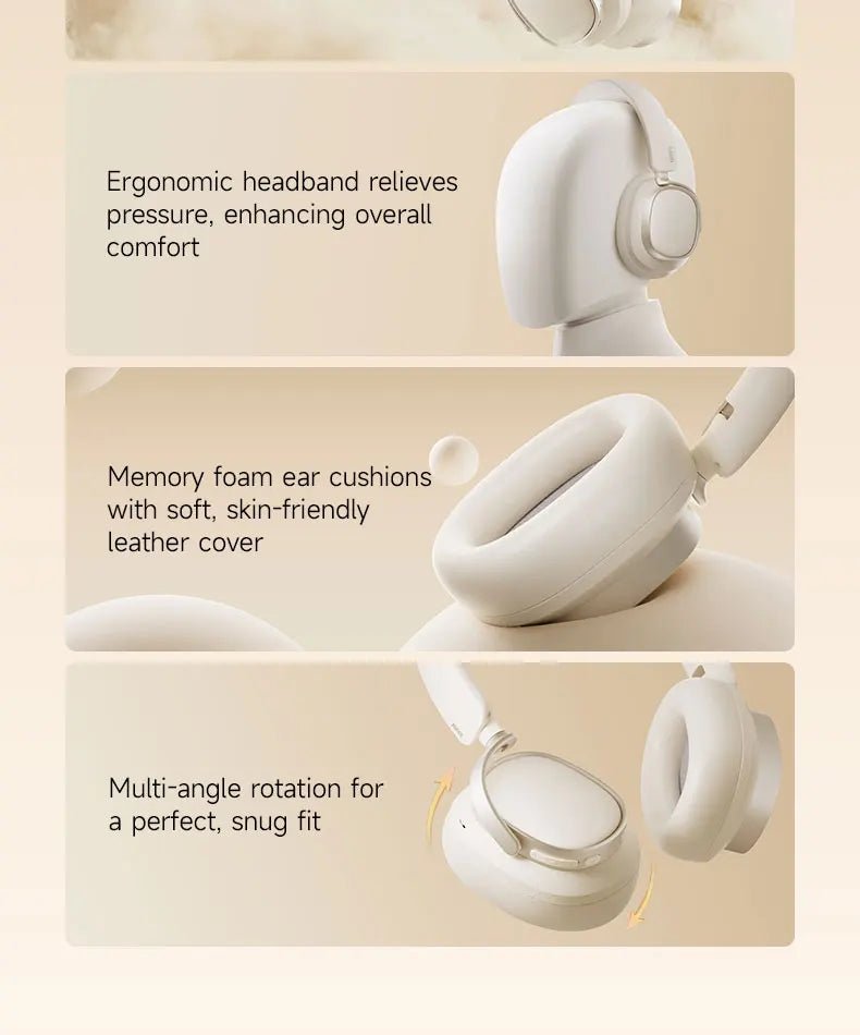 With hybrid active noise cancellation (ANC) and over-ear passive noise isolation, it can block out up to -45dB of ambient noise, delivering an immersive audio experience even in the noisy environments.