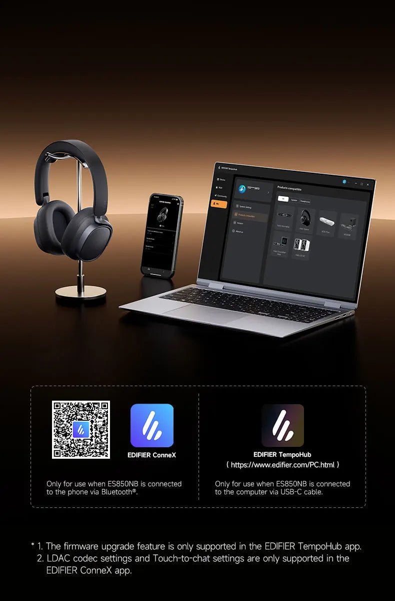 Download EDIFIER ConneX mobile app or EDIFIER TempoHub computer app to explore more functions.