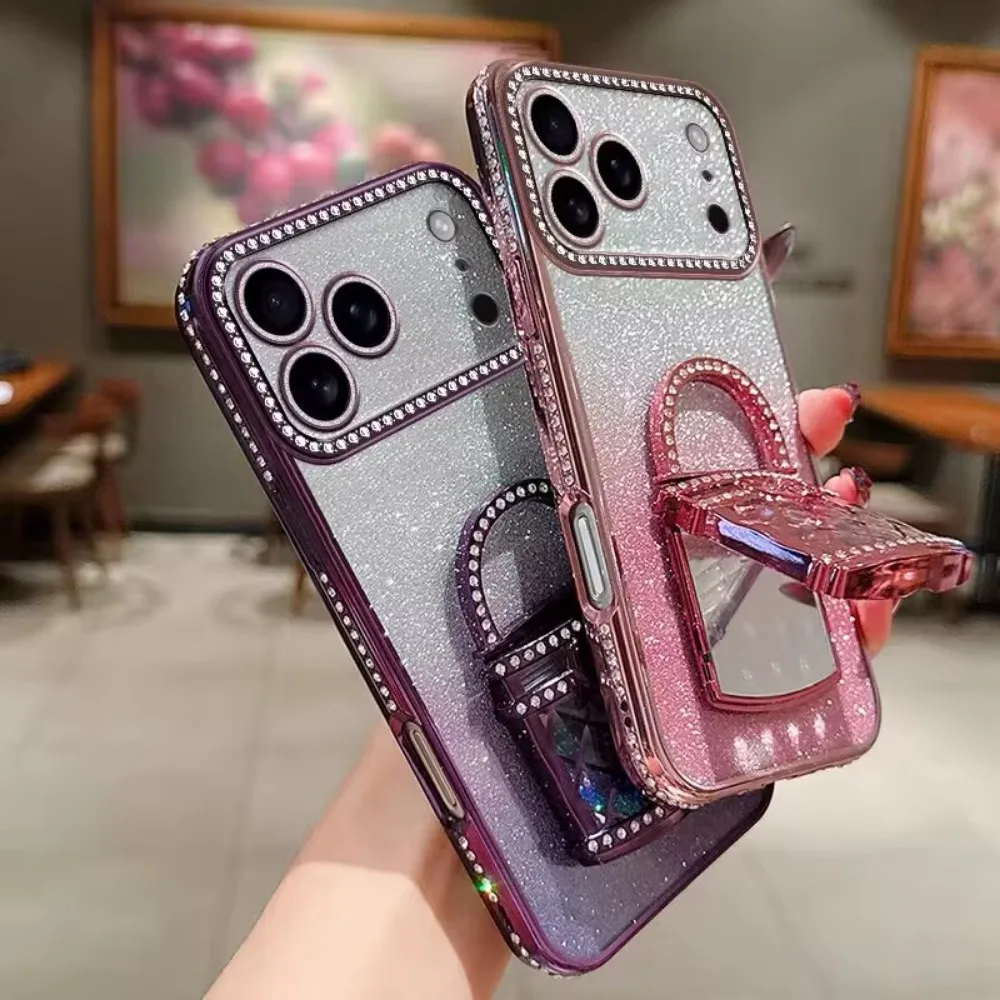 "💎 Rhinestone Glitter Phone Case with Makeup Mirror Holder for iPhone Series 💎