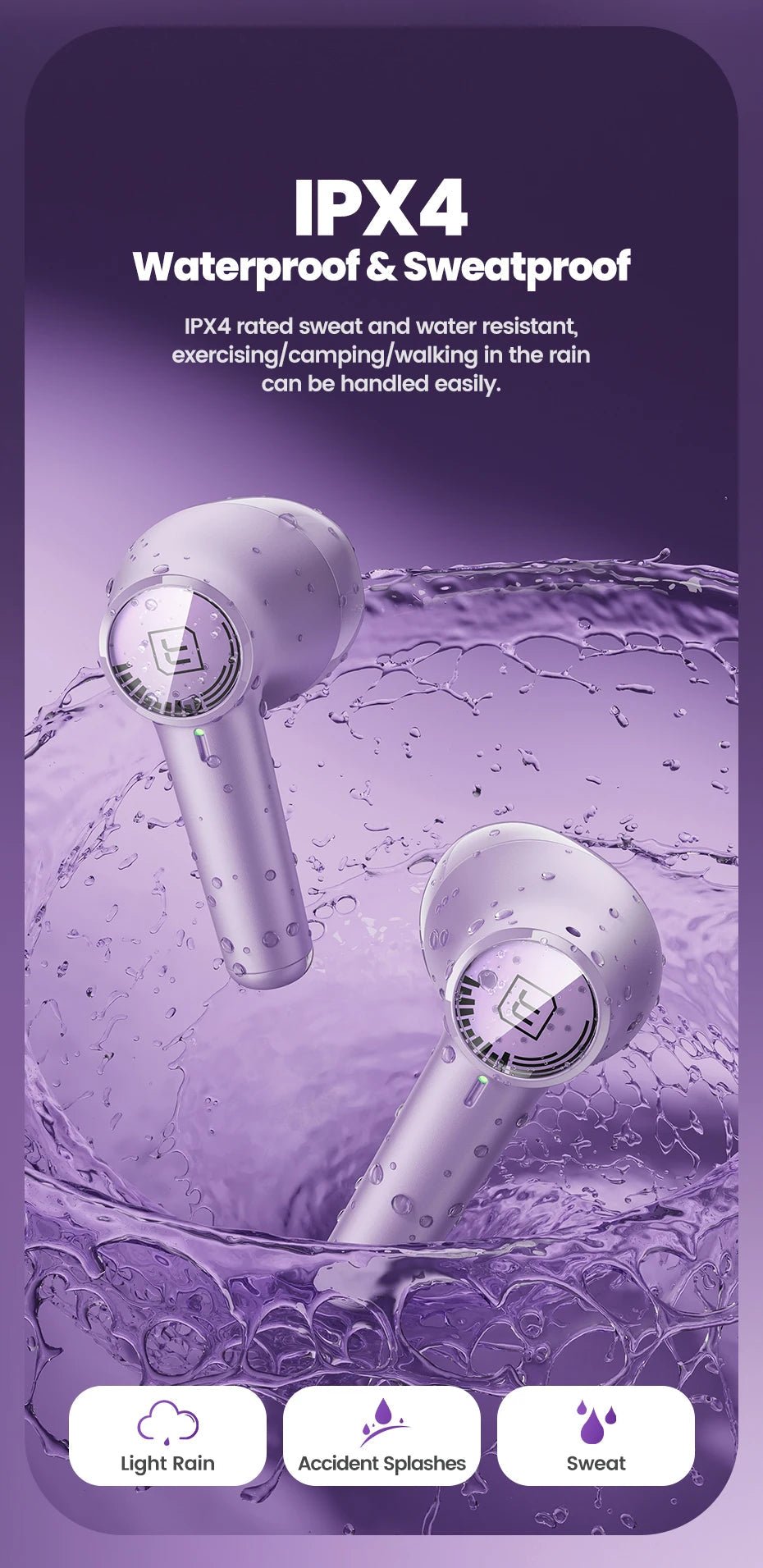 ✅ Waterproof & Sweatproof (IPX4) – Perfect for workouts, outdoor activities, or daily commuting.