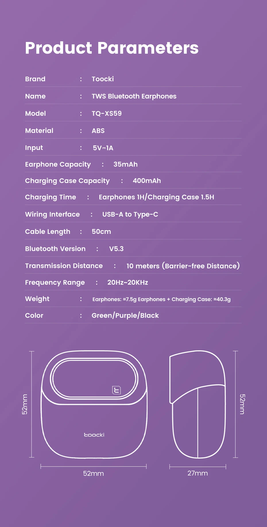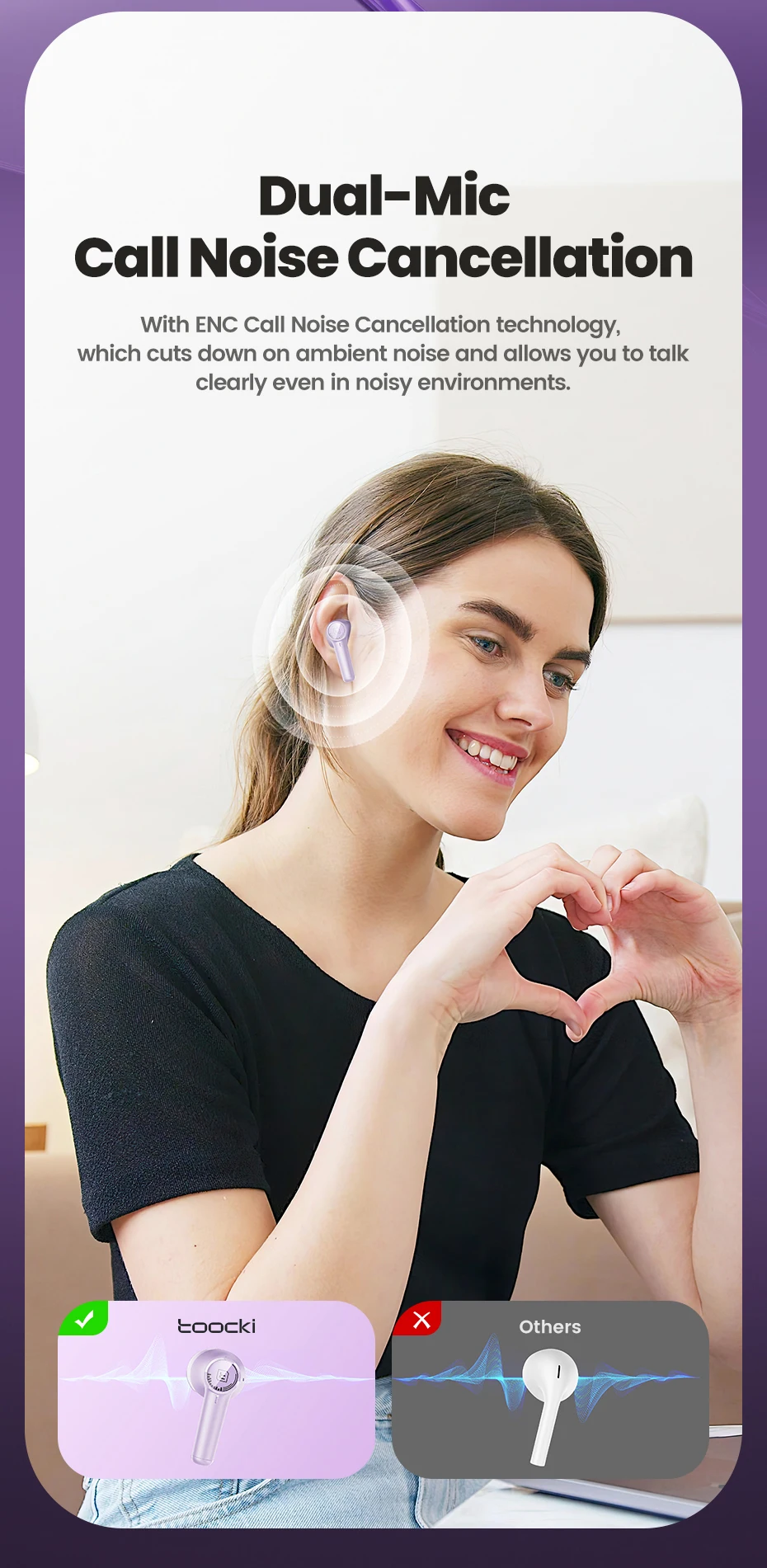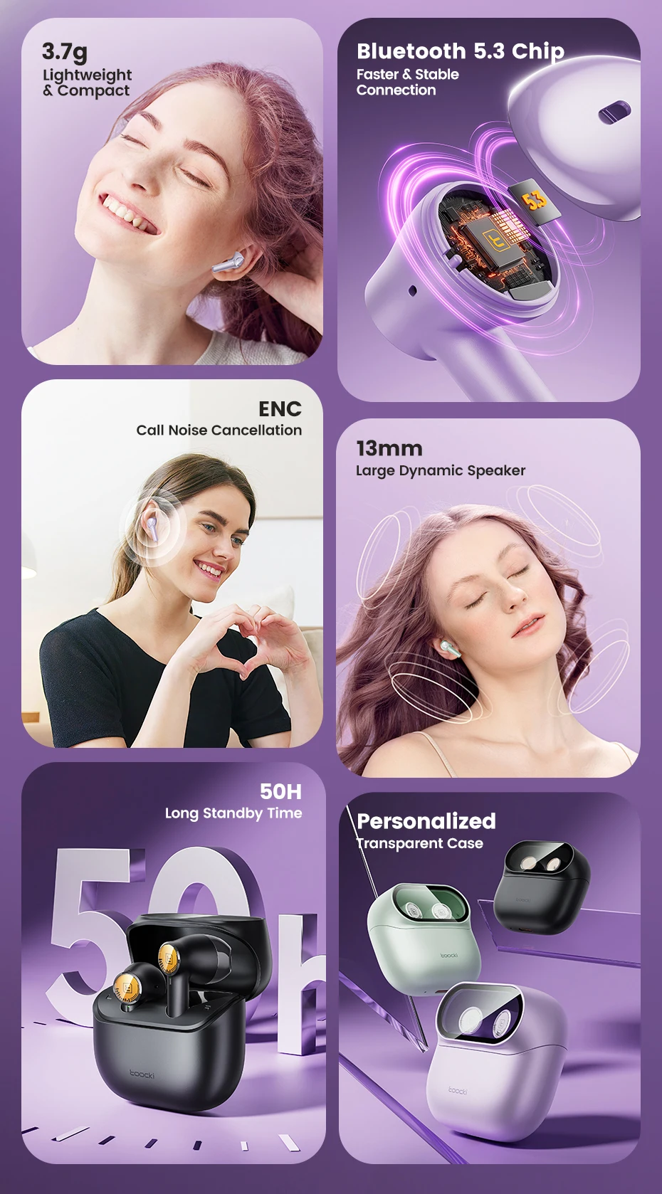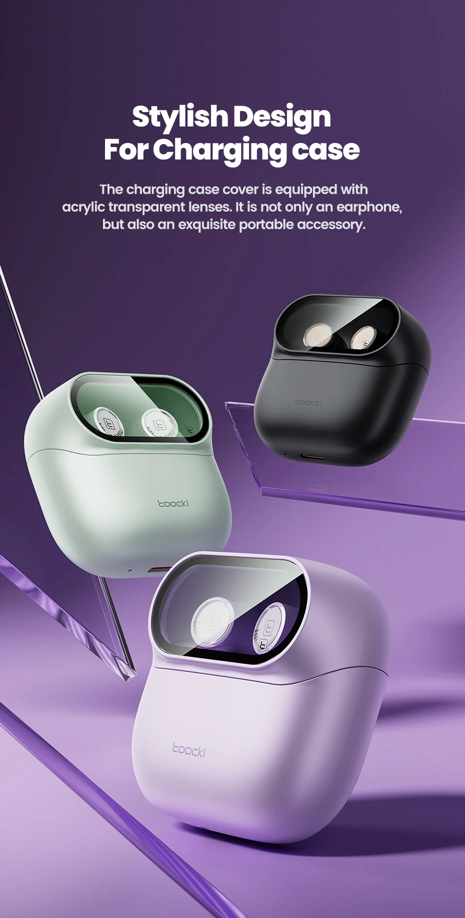 🔋 With in-ear ergonomic design, transparent charging case, and built-in microphone, the Toocki ENC Earphones combine style, performance, and convenience.