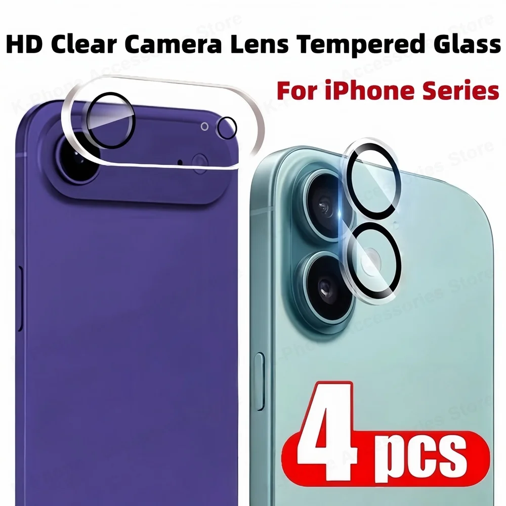 "4PCS Camera Lens Protector for iPhone 17/17 Air/17 Pro/17 Pro Max – Full-Cover HD Clear 9H Tempered Glass, Anti-Scratch & Waterproof Lens Film"