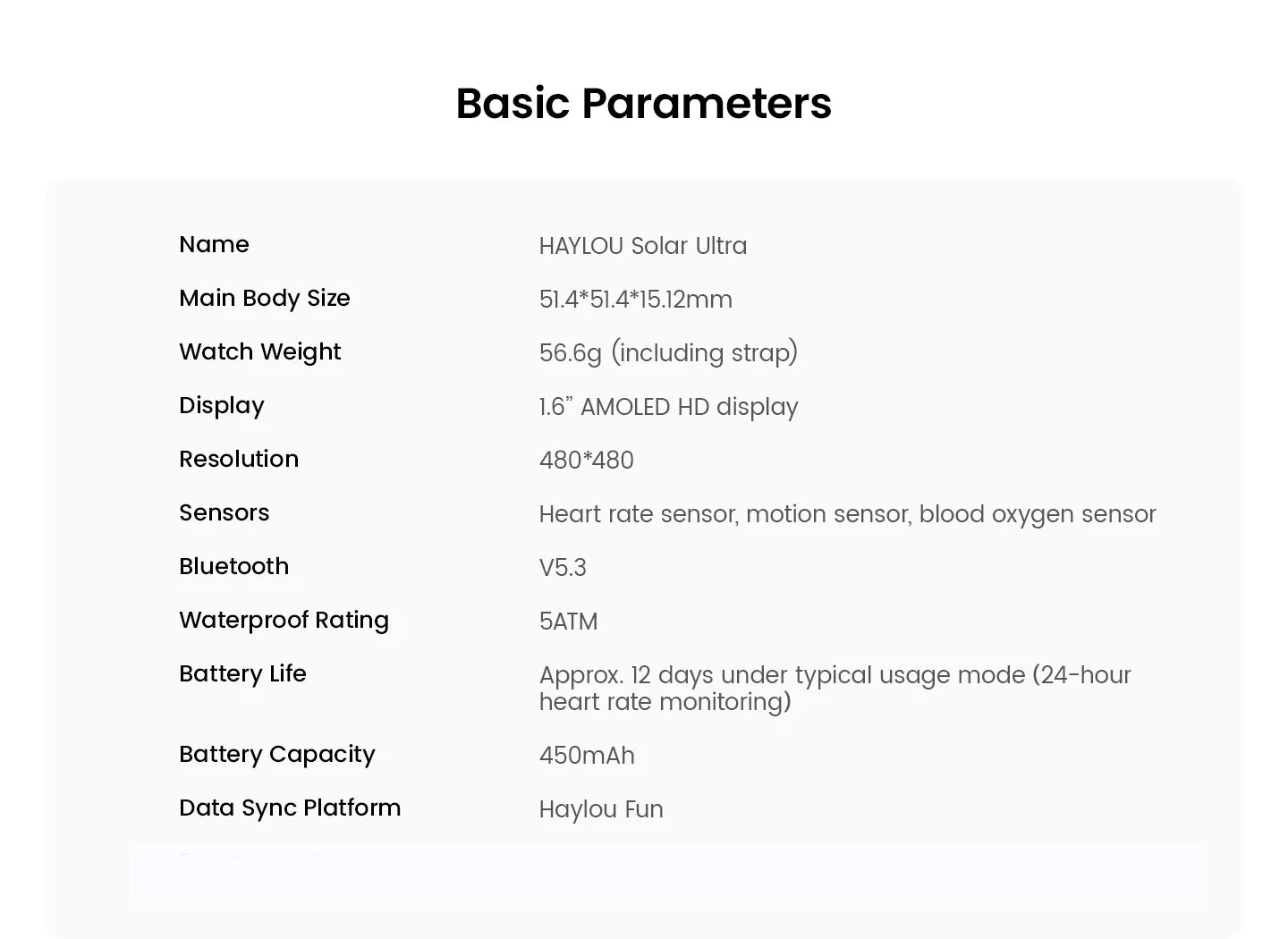 HAYLOU Solar Ultra GPS Smartwatch 1.6” AMOLED Display 5ATM Waterproof Built-in GPS Bluetooth Phone Calls Sports Smart Watch