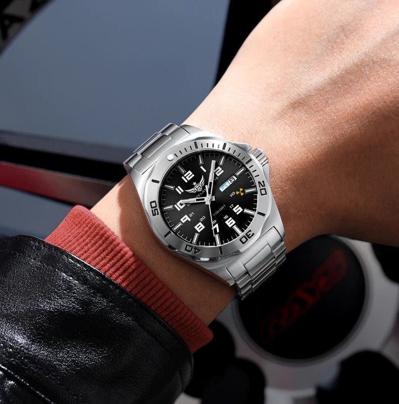 Feature: Complete Calendar,DIVER,Week Display,Screw crown,water proof