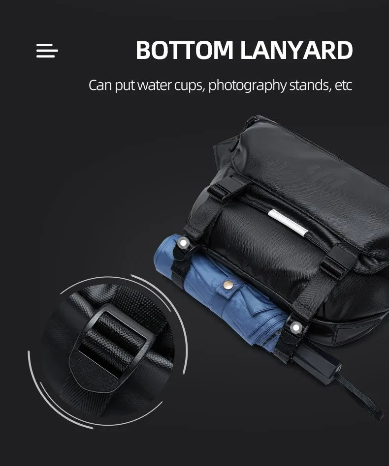 4. Bottom fixing design: Adjust the bottom fixing strap, you can put the photography tripod or umbrella and other items.