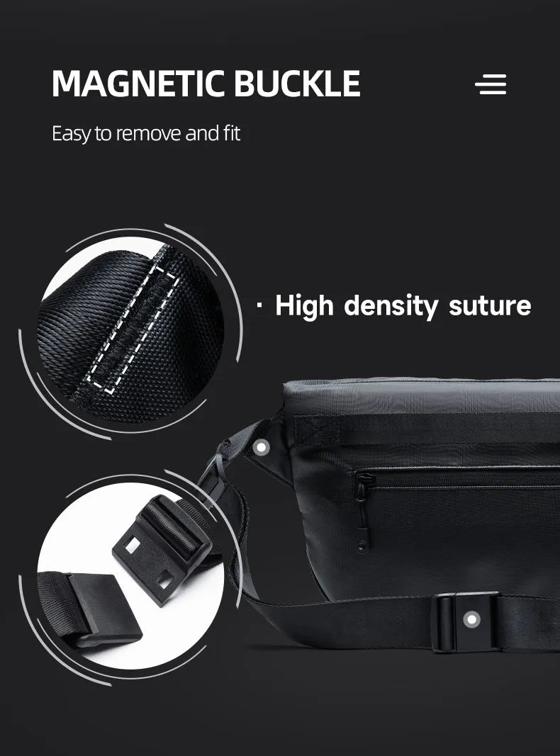 2. Magnetic Buckle Design: the shoulder strap has a magnetic buckle for quick removal. The magnetic closure prevents stolen items.