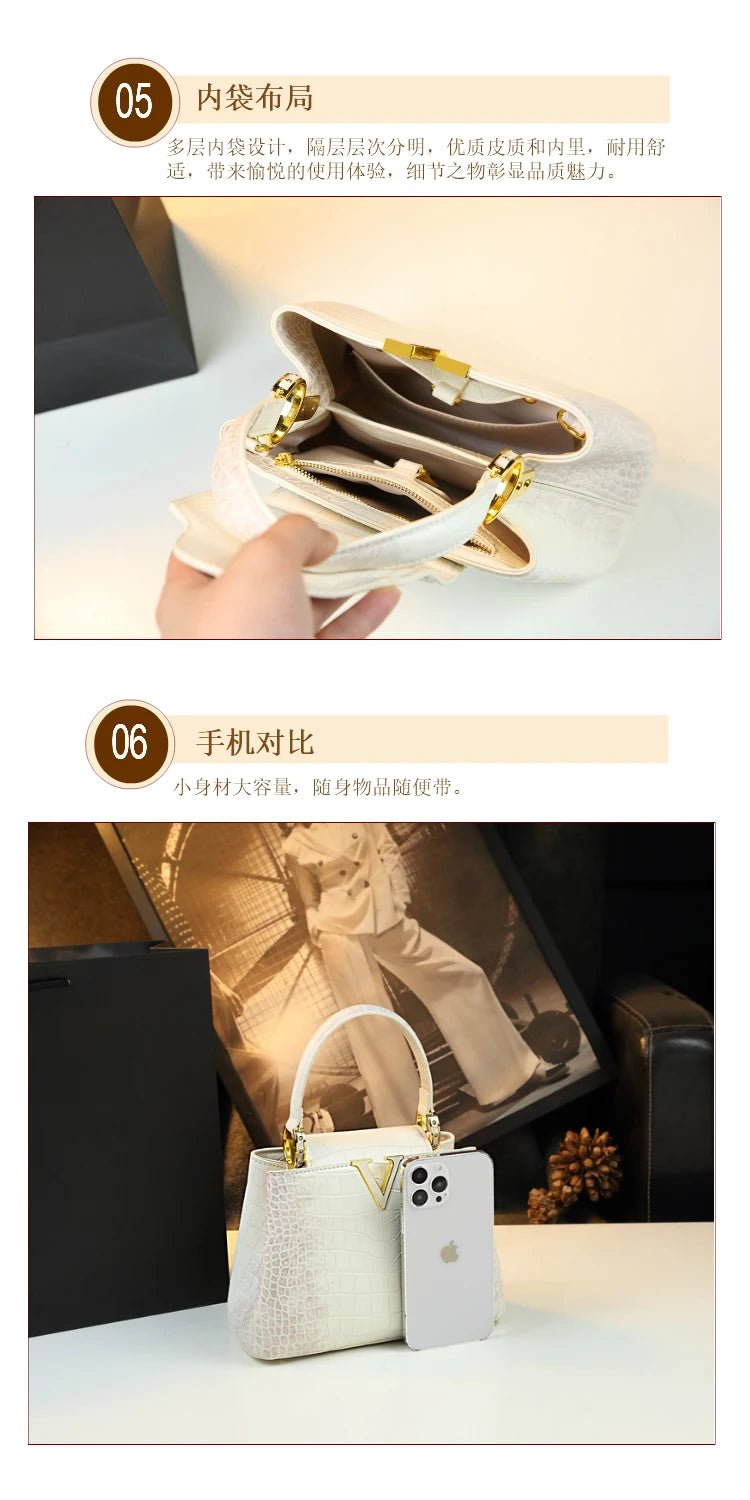 Luxury Fashion White Leather Women Handbags 2024 New Female Small Shoulder Messenger Bag Crossbody Portable Shell Bags