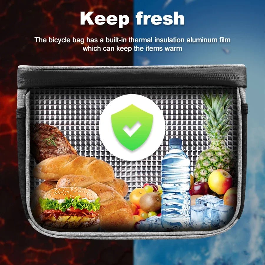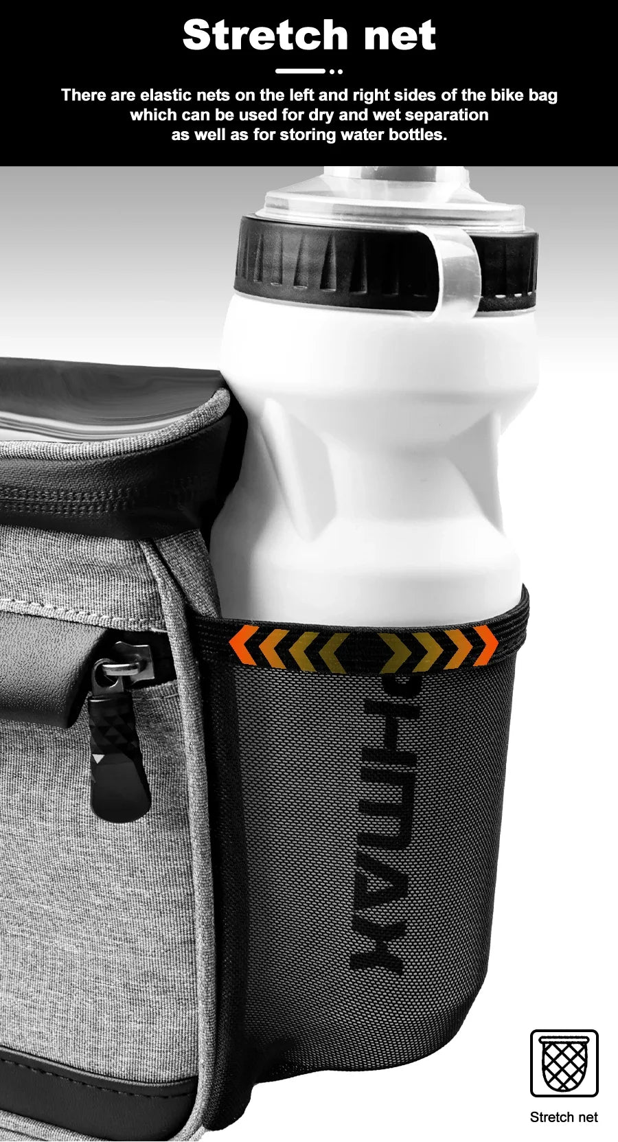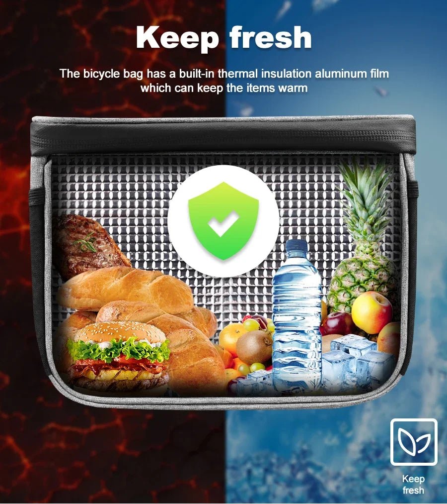 2.The bike bag has a built-in insulated aluminum film to keep things moist. The cubic capacity is large and can hold a lot of things. The bag is designed with waterproof fabric and waterproof zipper. Elasticized mesh on the left and right sides of the bike bag for wet and dry storage and for storing water bottles.