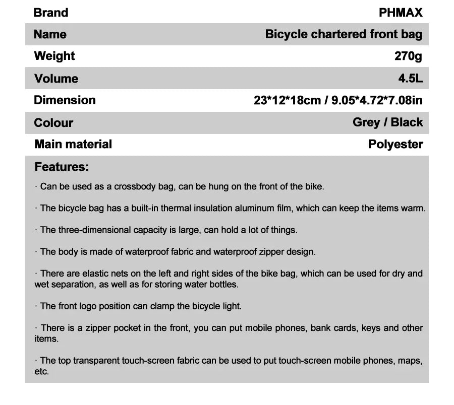 1.Can be used as a crossbody bag or hang on the front of your bike.