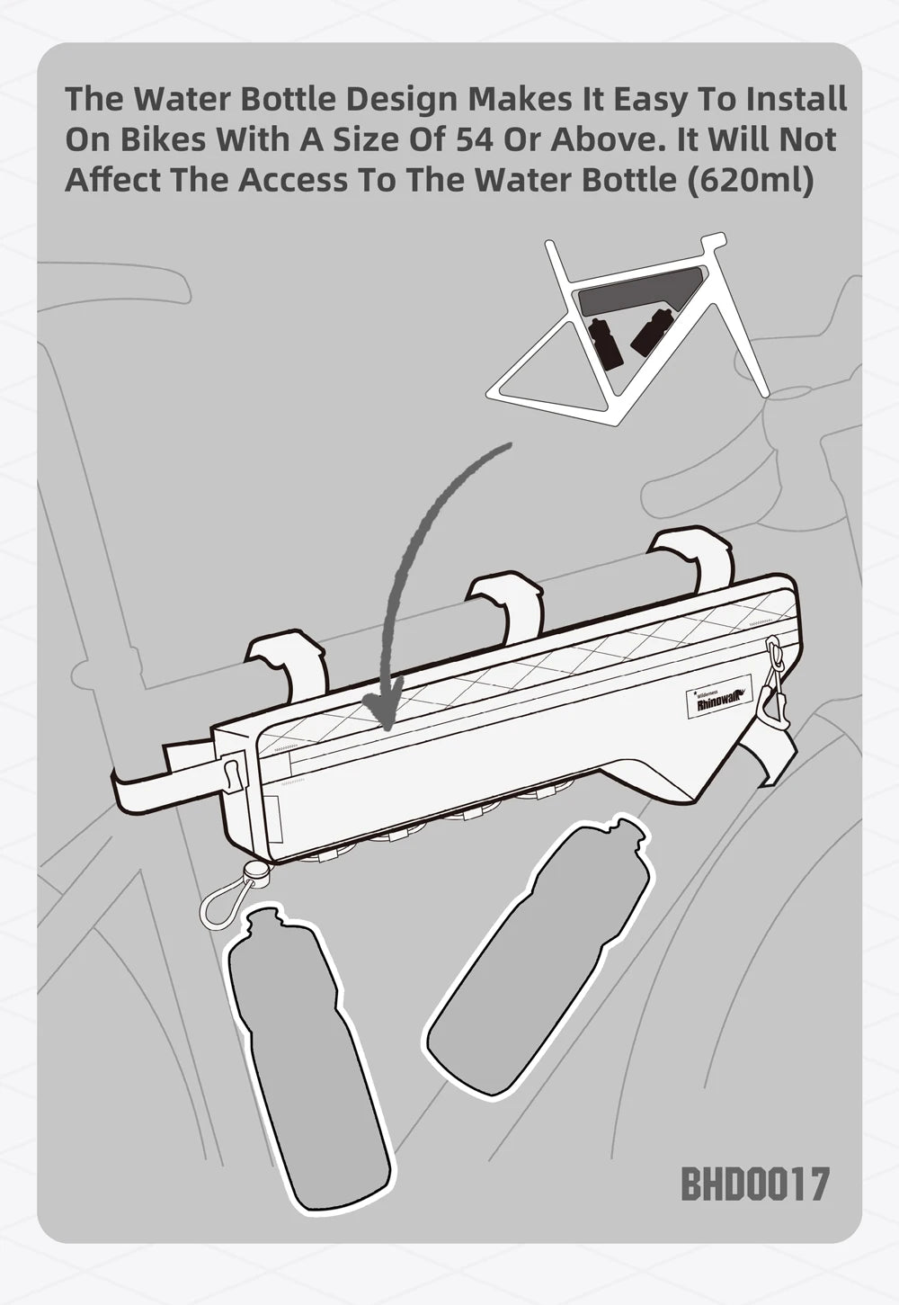 💦 Water Bottle Friendly: Designed to fit frames larger than 54 cm without blocking access to your 620ML water bottle.