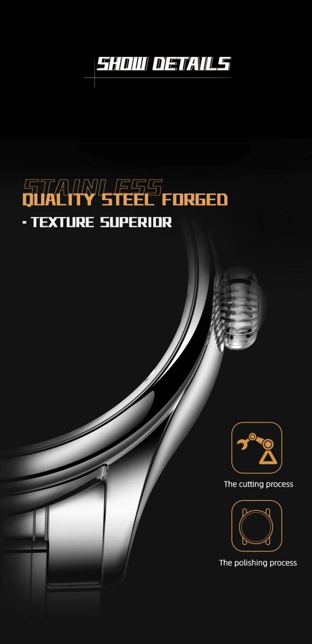🔹 Perfect Size & Fit – Dial diameter 42.5mm, thickness 12mm, and leather band length 24cm, with a push-button hidden clasp for secure, elegant wear.