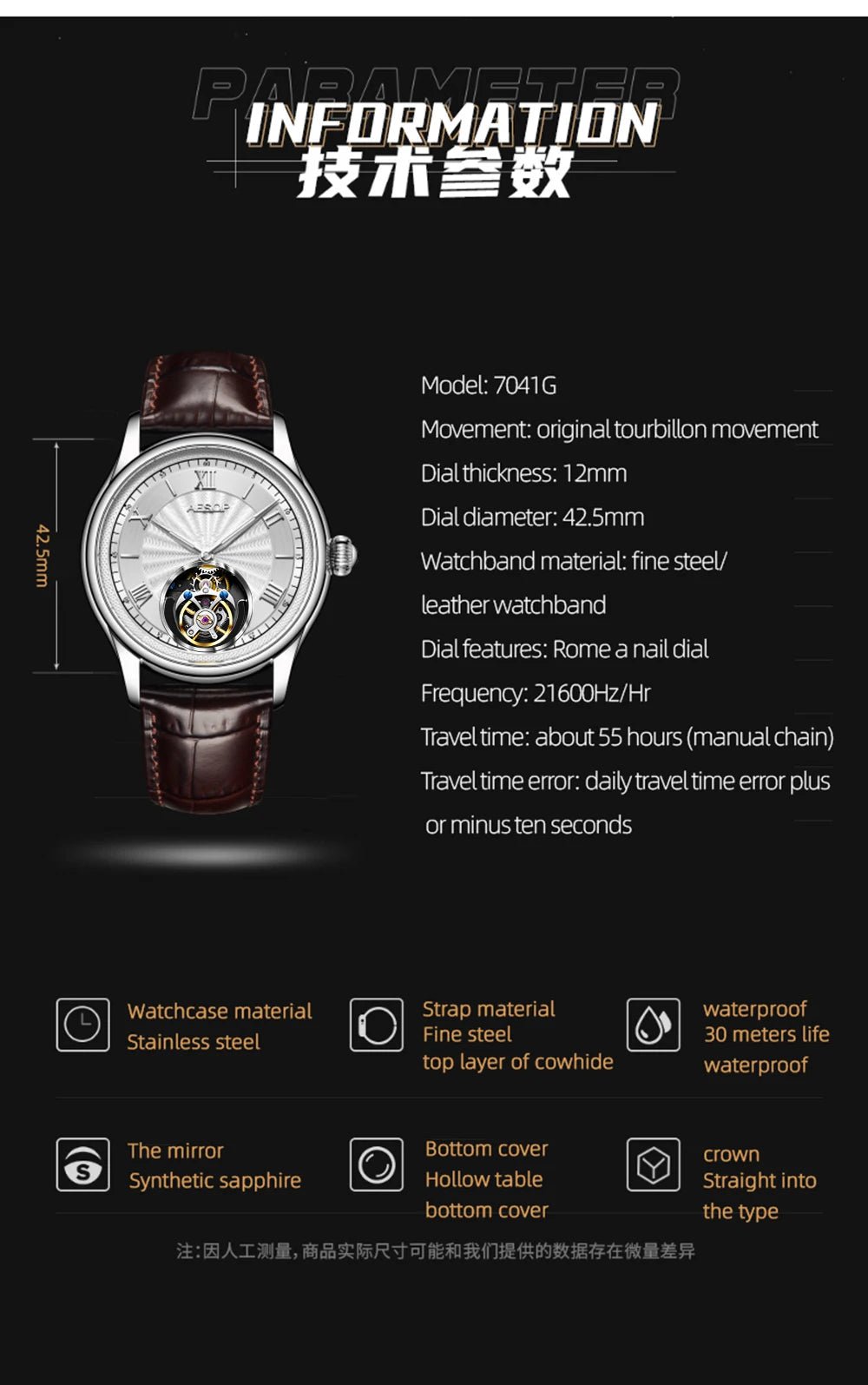 Experience precision, elegance, and craftsmanship with the AESOP Tourbillon Skeleton Mechanical Watch 7041. This limited-edition, off-axis flying tourbillon watch combines modern style, sophisticated mechanics, and timeless luxury, making it the perfect accessory for watch collectors, professionals, or luxury enthusiasts. 🌟