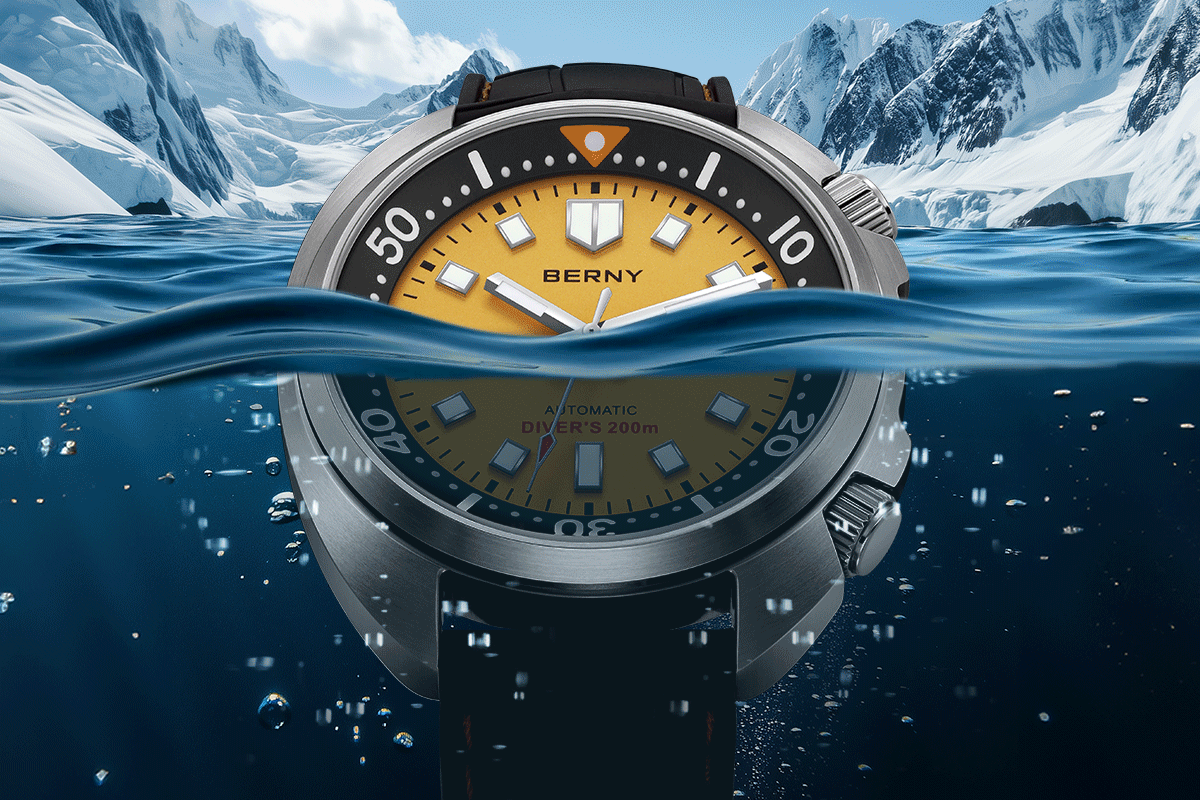 3. Dual Screw-In Crown and Screw-In Back Cover: Equipped with a dual screw-in crown and a screw-in back cover, this timepiece offers exceptional water resistance. Rated at 200M, it’s built to withstand extreme conditions, making it ideal for diving and other water-intensive activities.