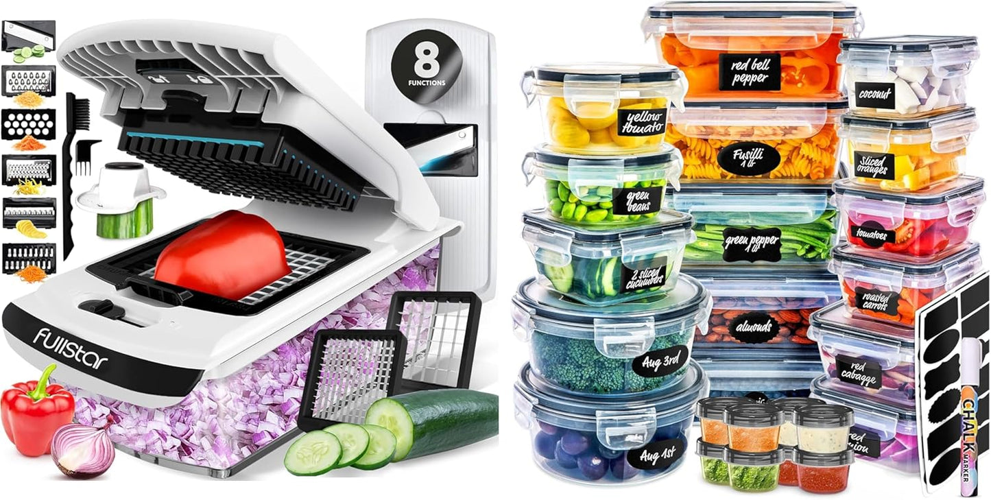 🍅 The Original Pro Chopper + 50-Piece Food Storage Container Set – Ultimate Meal Prep & Kitchen Organization Bundle ✨