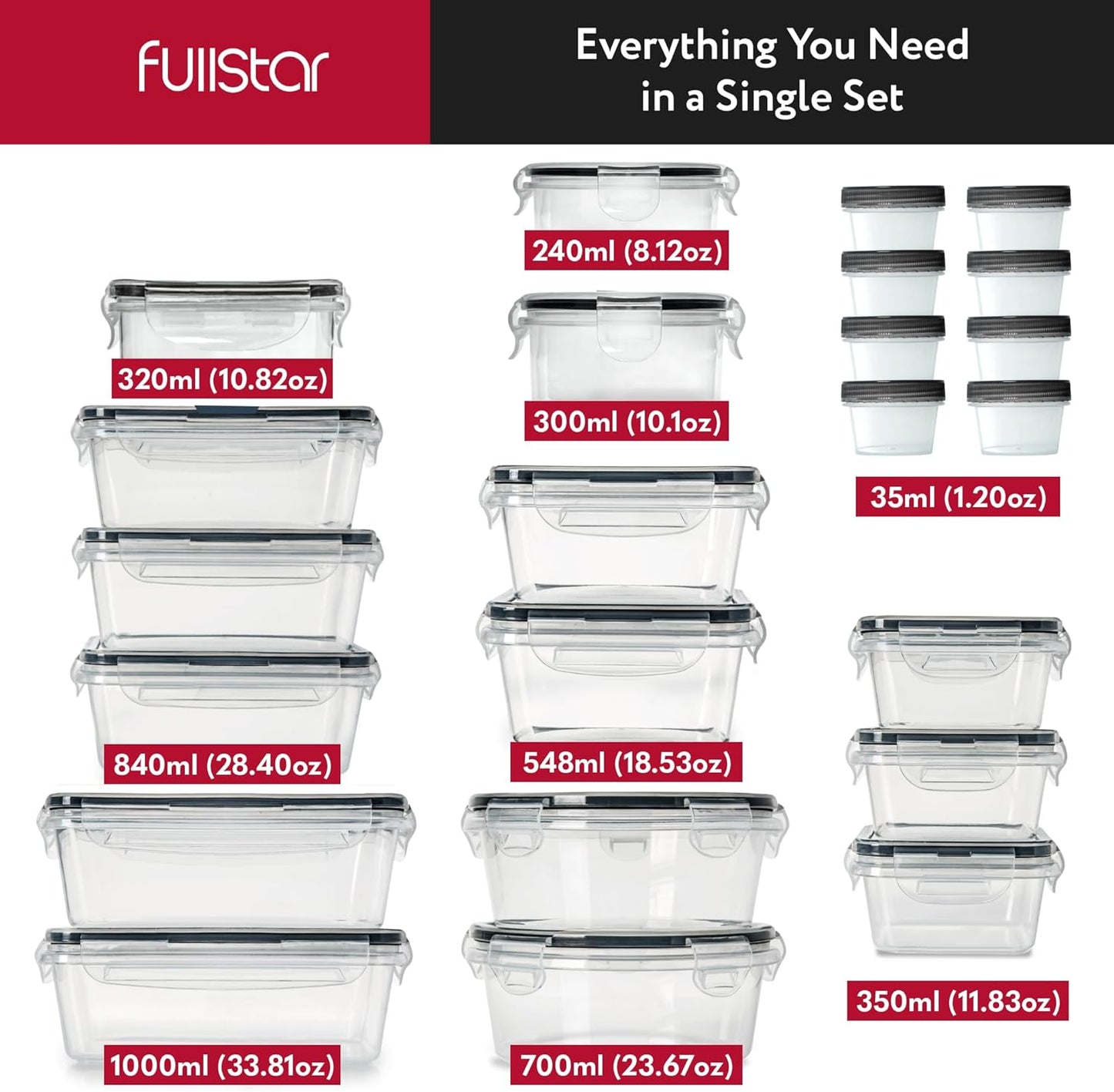 ✅ 50-Piece Food Storage Set – Includes 24 containers and 24 lids in 10 useful sizes, plus sticky labels and a chalk pen for easy organization.