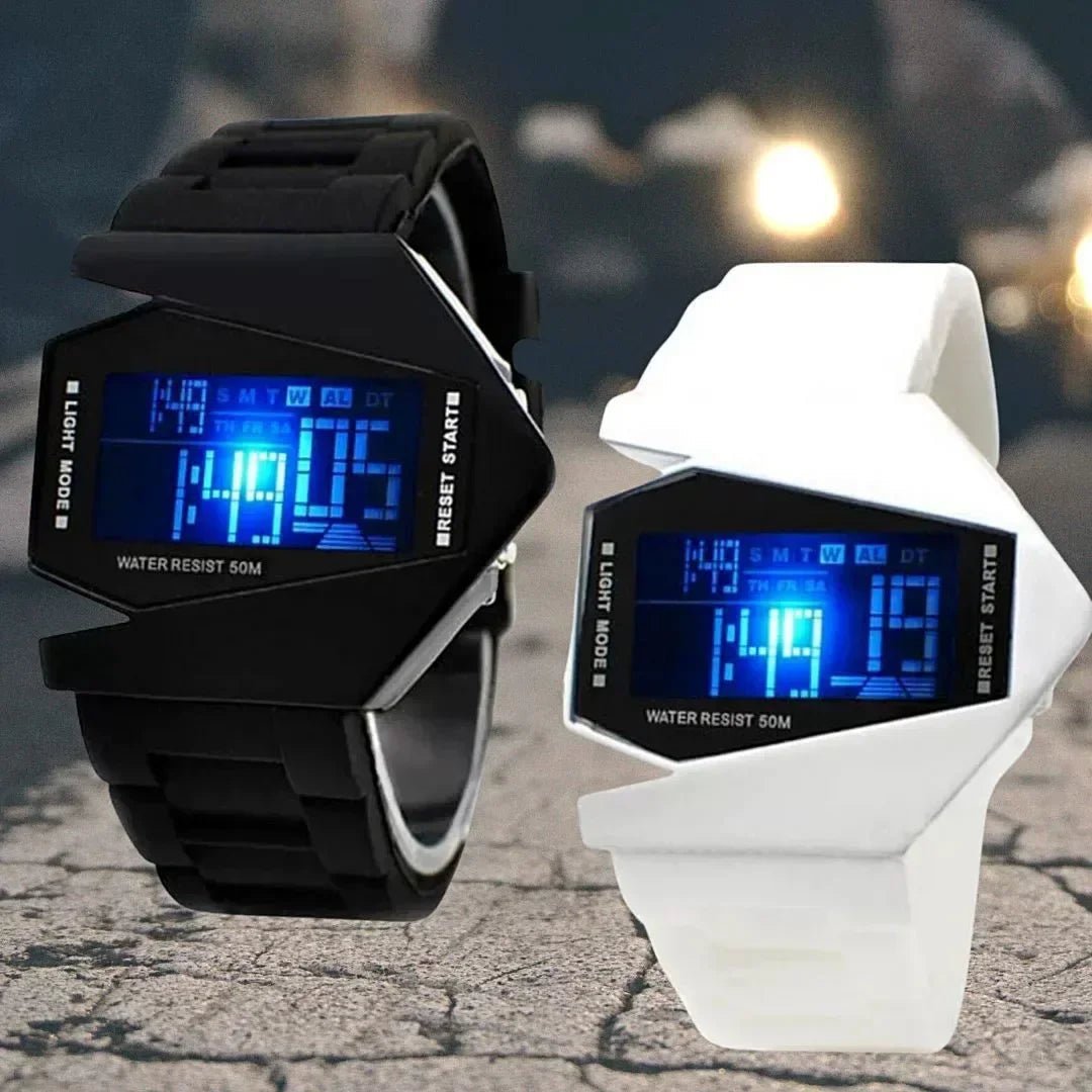 Men's and Women's Sports Couple Watches, Luminous Multi-functional Square Fighter Plane Watches, Men's Electronic Watches